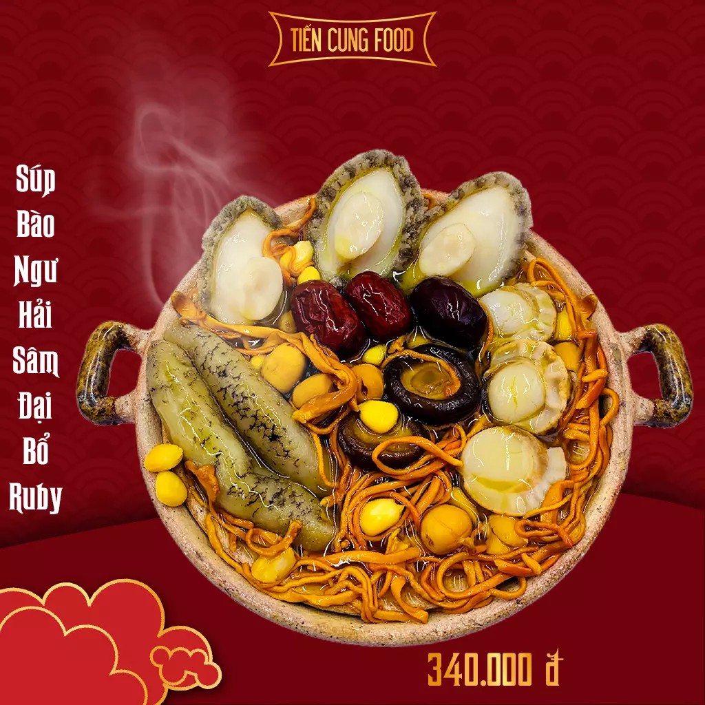 ❣️SÚP BÀO NGƯ – HẢI SÂM ĐẠI BỔ RUBY (Phần 1 người ăn bao no, ngon, bổ dưỡng) Phần gồm: 3 bào ngư Hàn Quốc thượng hạng, 3 sò điệp nhật, 2 hải sâm đại bổ, 450ml nước súp, hạt sen, bông đông trùng, nấm hương, hồng …, nước xương tuỷ hầm 72 tiếng.